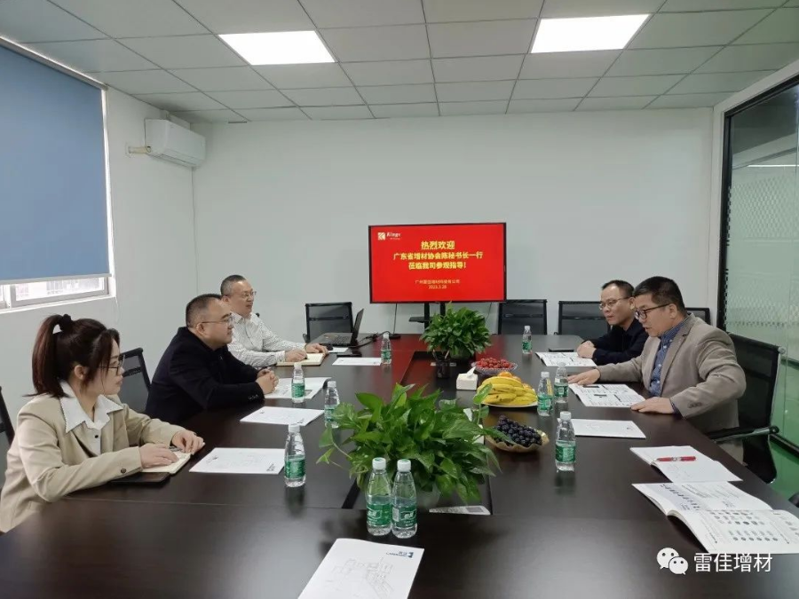 3月28日,广东省增材制造协会陈孝超秘书长一行莅临广州雷佳增材科技有限公司走访交流,雷佳董事长陈丙云、总经理张世钦、董事长助理郭玉珍予以热情接待。